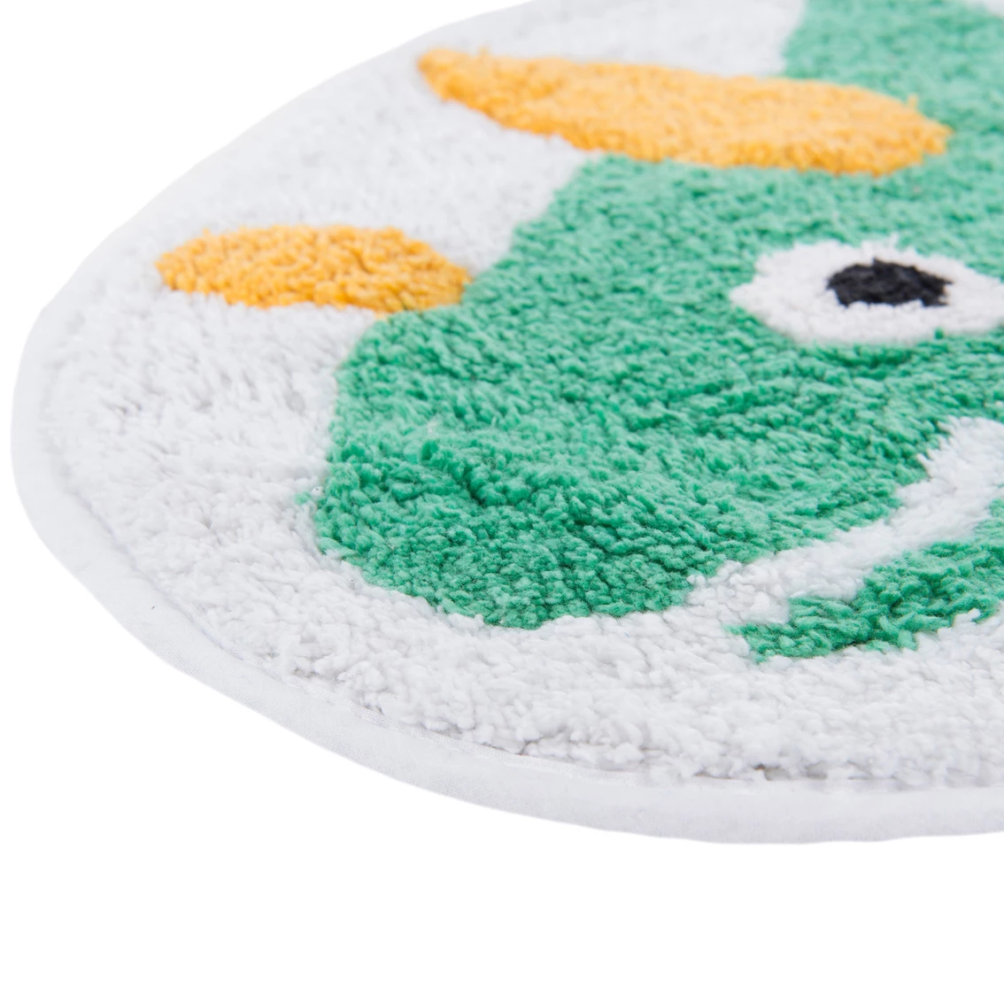 Transform your child’s bathroom into a prehistoric playground with the Dinosaur Bath Rug by Allure Home Creation. This tufted bath rug, made of 100% cotton with a skid resistant latex backing, features a personable brightly colored shaped dinosaur on a white backdrop. It measures 21in. x 34 in. and will give your little one a comfy, soft spot to stand while keeping your floor clean and dry. This delightful dino-mite buddy is sure to bring fun and adventure to your dinosaur enthusiast’s bathroom. Machine wash cold and tumble dry on low heat. Use alone or coordinate with the Dinosaur Shower Curtain and other matching Bath Accessories.