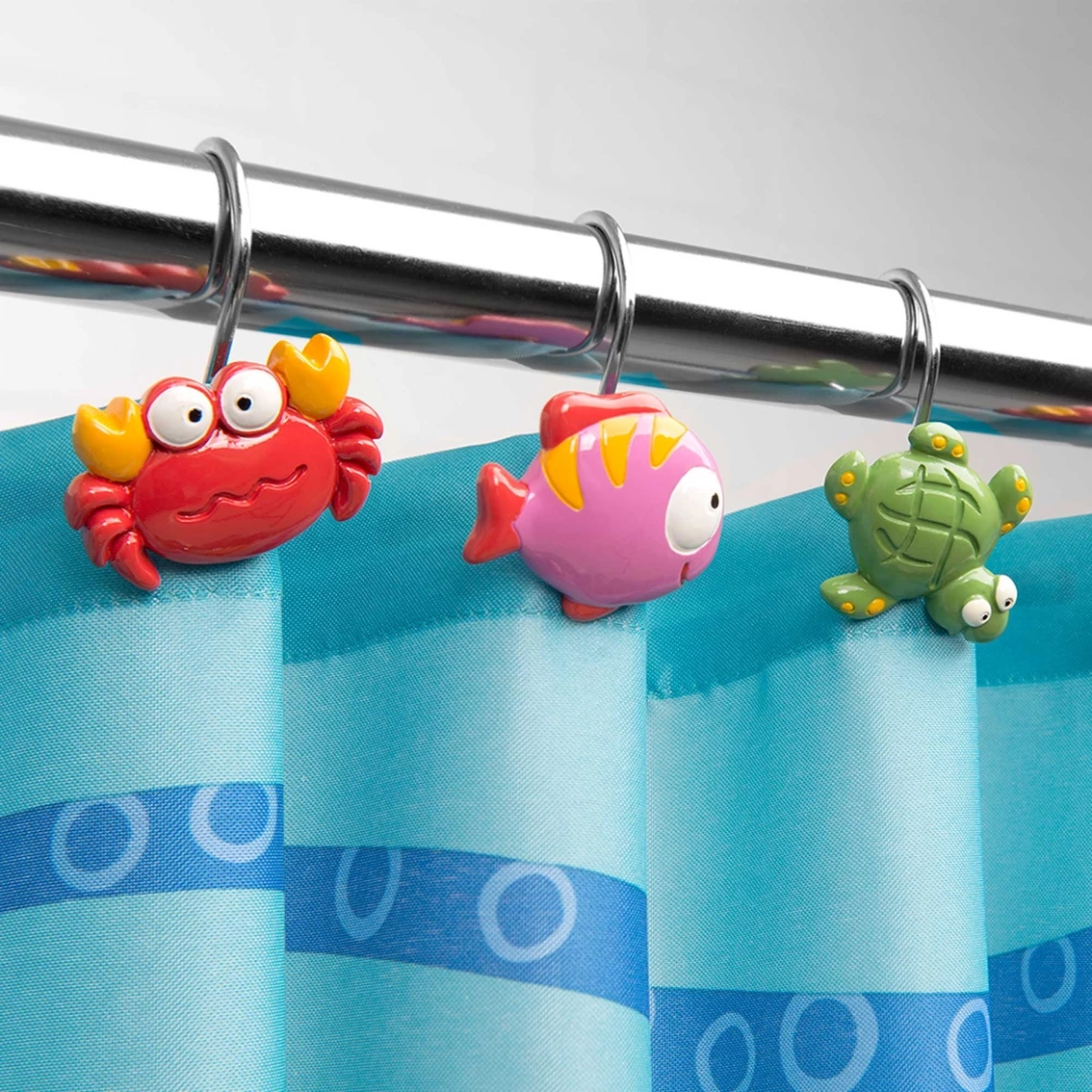 Take a trip under the sea with these Fish Tails Shower Hooks by Allure Home Creation. The 12 pc. set includes an assortment of novelty fish, crabs and turtles, all creatively shaped and painted in a vibrant medley of bright colors. These adorable creatures will not only hold up your shower curtain, but will also add a touch of whimsy to your bathroom setting.