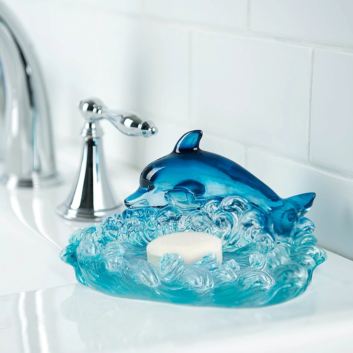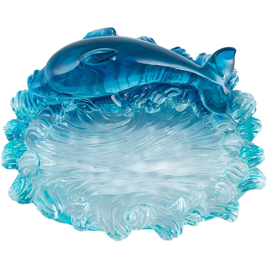 The Jump For Joy Dolphin Resin Soap Dish by Allure offers the perfect place to hold a bar of soap. It coordinates with other matching pieces in the Jump For Joy Bath Accessory Collection (sold separately) and measures 6.30 in. x 5.24 in. x 3.27 in. This piece can be hand washed or spot or wipe cleaned. Model: JUFSD00.