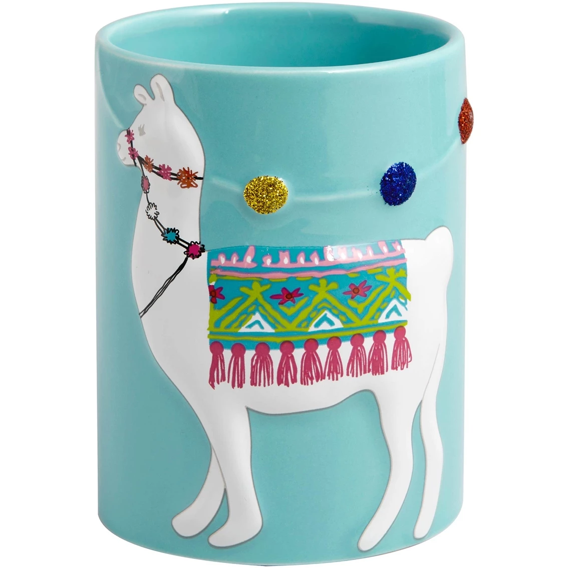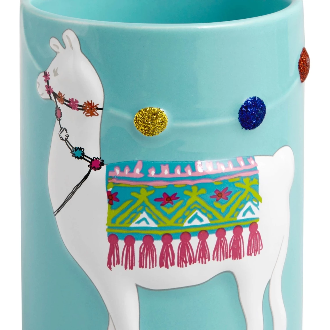 Add a touch of whimsical charm to your bathroom with the Llamas Tumbler by Allure Home Creation. This fun and novel Tumbler features adorable llamas adorned in multi-colored decorative blankets and strands of pom-pom like clusters. This personable piece is perfect for all ages. Made of 100% ceramic, embossed for extra detail and dimension. Additional coordinate pieces are available.