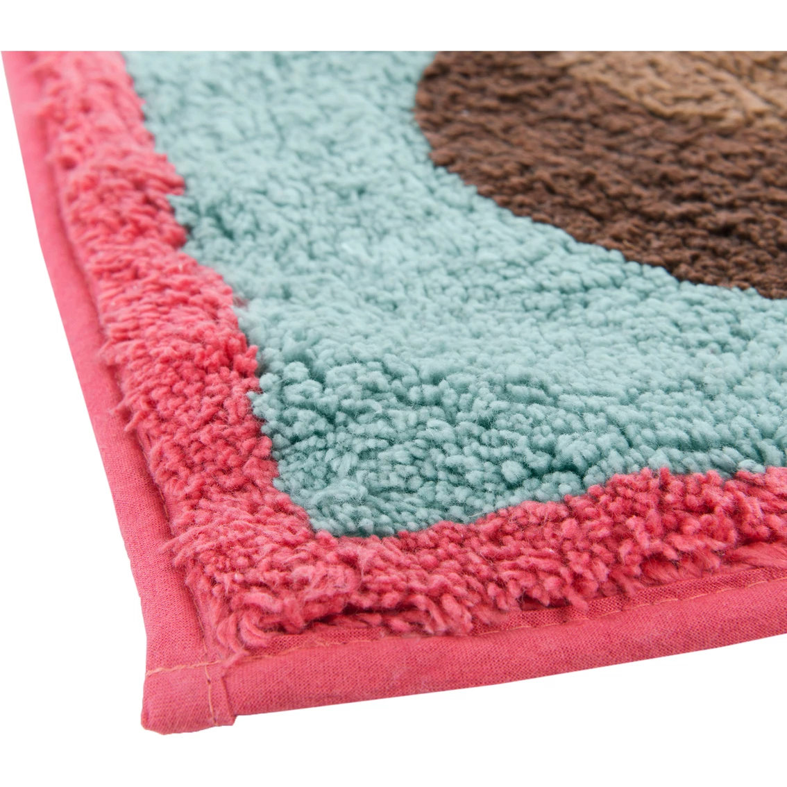 Bring lots of personality and canine fun to your bathroom with the Puppy Love Bath Rug by Allure Home Creation. This oblong tufted bath rug, made of 100% cotton with a skid resistant latex backing, features an adorable multi-colored pup highlighted against a blue backdrop with a red border. It measures 20 in. x 32 in. and will give your little one a comfy, soft spot to stand while keeping your floor clean and dry. Your bathroom routine will be more fun and playful when you share it with this charming and cheerful furry friend. Machine wash cold and tumble dry on low heat. Use alone or coordinate with the Puppy Love Shower Curtain and other matching Bath Accessories.