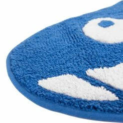 Whimsical and personable shark bath rug in bright blue. 100% Cotton front, Latex backing. Soft and durable. Helps keep your bathroom floor clean and dry. Size 21in. x 34 in. Shaped. Easy Care-Machine Wash Cold and Tumble Dry Low. Model: SHKRU00.