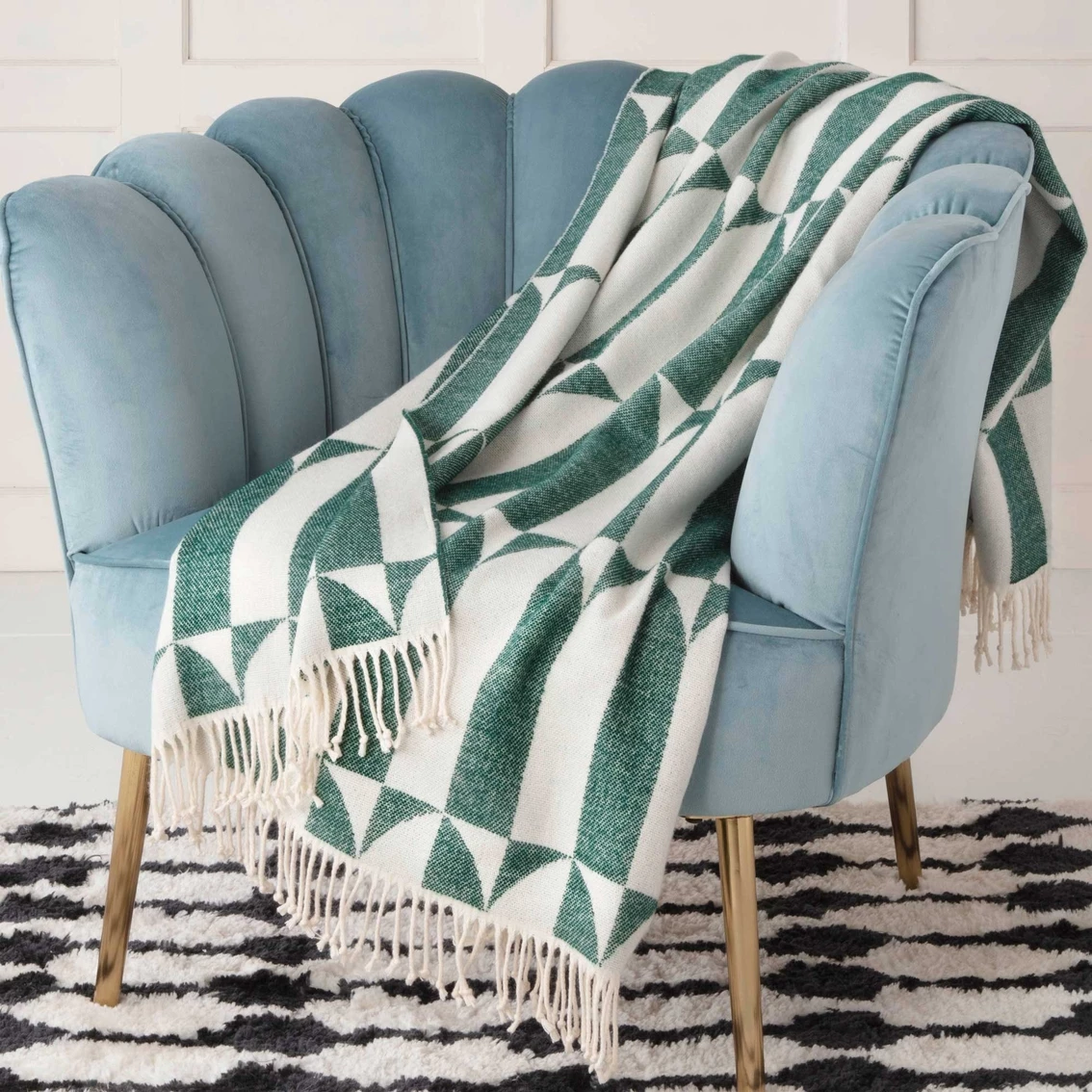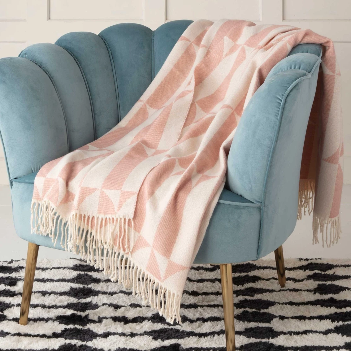 Fringes are always in, and the stylish Novogratz Waverly Tile Printed Throw delivers the throwback touch with its fashion-forward knotted trims. Its vibrant geo print is right on trend too. An extra cover for getting cozy on the sofa or bed, this 100% Acrylic throw has a fluid, ultra-soft pashmina-like feel. It is lightweight enough for cool spring days and summer evenings, but warm enough to have you wrapped up year-round, too.