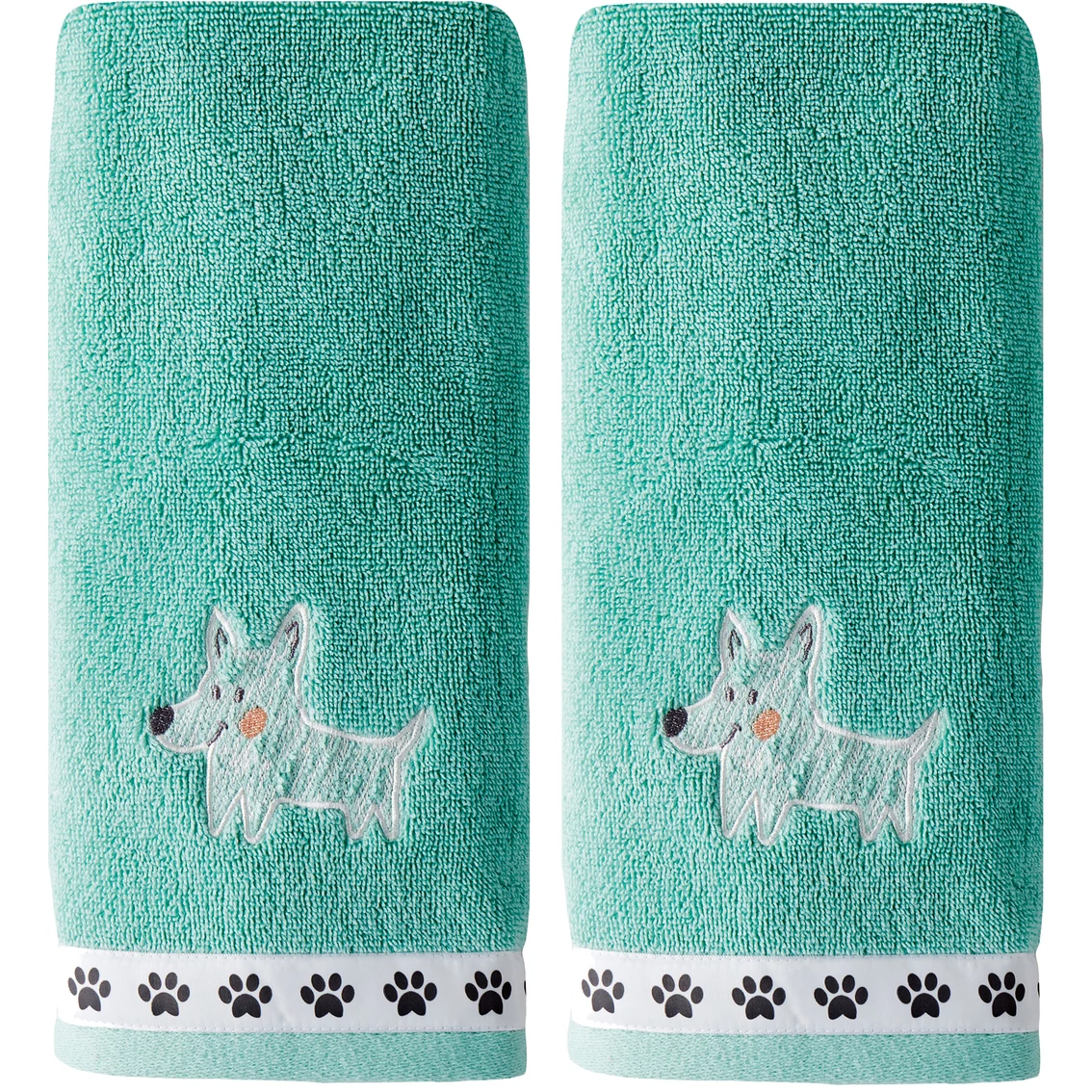 Refresh any washroom with whimsy by adding the Scribble Pup hand towels. Sure to make you smile, these adorable towels features an embroidered dog and printed paw print ribbon trim. Coordinate the Scribble Pup hand towel with the matching shower curtain and bathroom rug for a coordinated look.